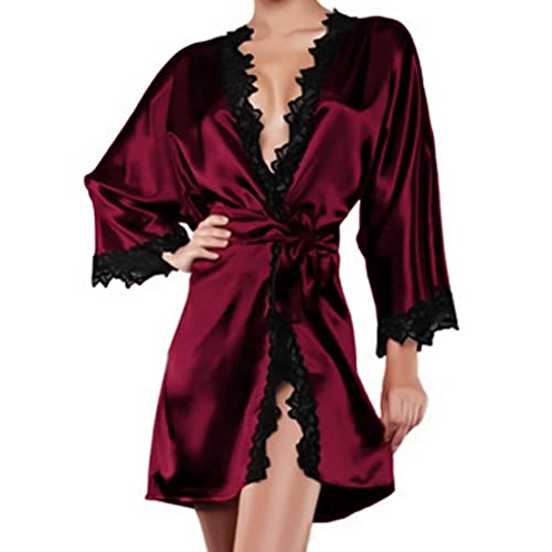 Generic - Wine Stain Robe Lingerie & Belt with Black Fancy