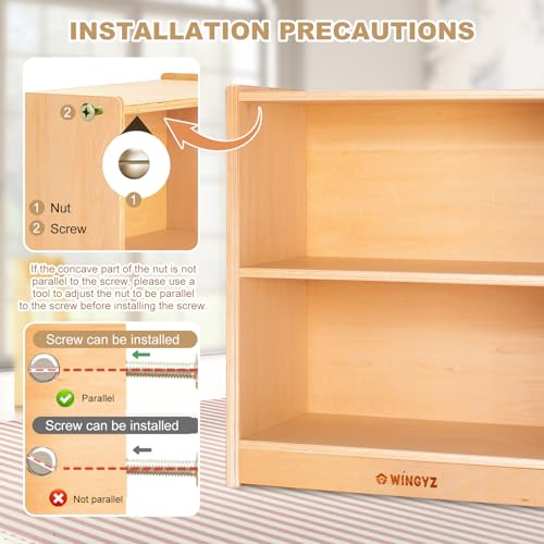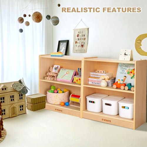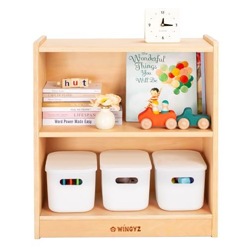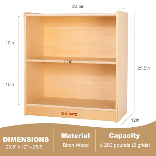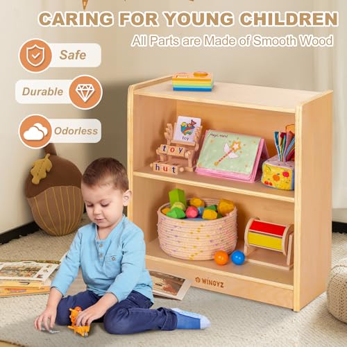 WINGYZ - wingyz Wooden Storage Shelf Organizer, 2-Tier Montessori Kids Toy & Book Shelf, Solid Wood Cabinet for Kids Rooms, Playroom, Classroom, Nursery, Preschool Furniture - Natural