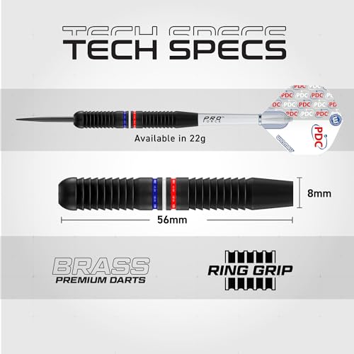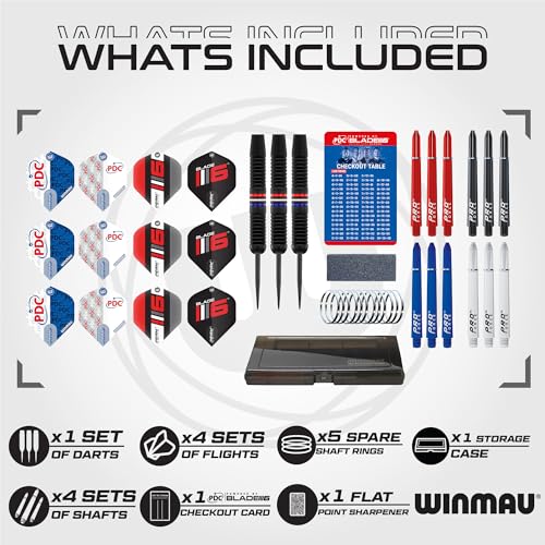 WINMAU - سهام بي دي سي التيميت احترافية برأس فولاذي 22 جم وملحقات، أسهم التصويب رمي السهام وأعمدة وبراية سنون وحافظة بلاستيكية شفافة سوداء من وينماو