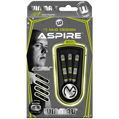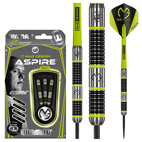 WINMAU - WINMAU Michael van Gerwen MvG Aspire Tungsten Steeltip Darts Set 23g with Prism Flights and Nylon Shafts (Stems)