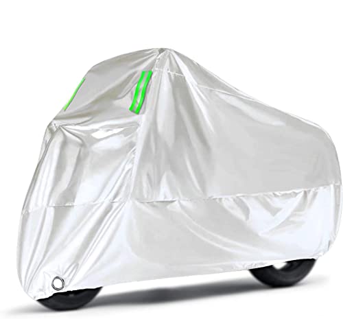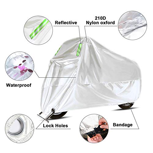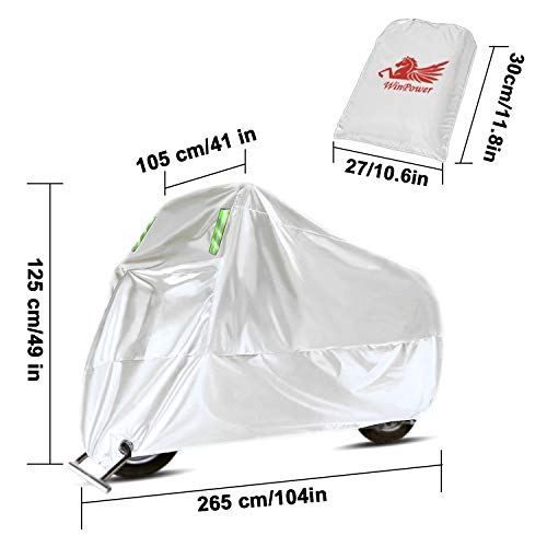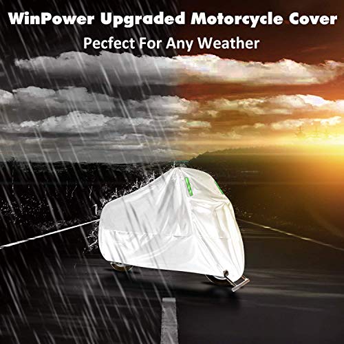 WinPower - WinPower Motorcycle Cover Outdoor Sand UV Protection Waterproof 210D Oxford Durable 104 inches Bike Motorbike Cover Compatible with All Motors, Silver 3XL