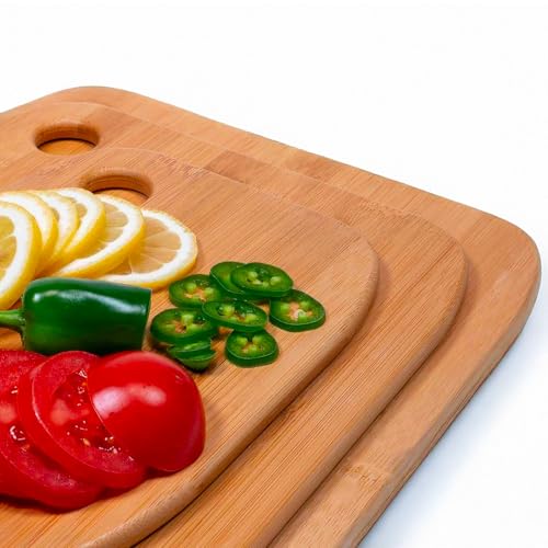 Wintem - مجموعة من 3 الواح تقطيع من الخيزران مع فتحة من وينتيم - 3 مقاسات مختلفة - سهلة التنظيف والتخزين - متينة ومثالية ايضا كصواني - سطح املس لا يحمل الروائح