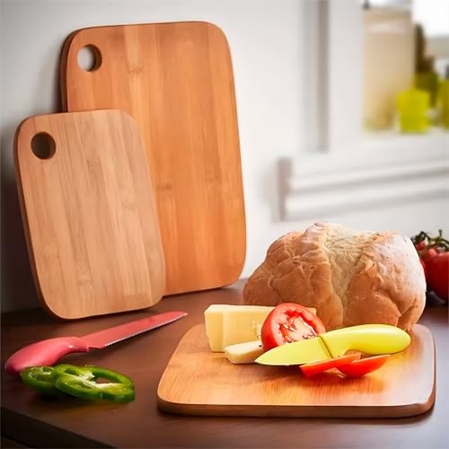- مادة متينة وطبيعية - مصنوعة بالكامل من الخيزران الطبيعي، تجمع ألواح التقطيع هذه بين القوة والخفة، مما يضمن ملحق مطبخ متين وصديق للبيئة.
