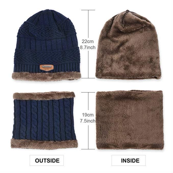 SAILIN - Winter Beanie Hat Knitted Beanie Hat and Scarf Set with Fleece Lining for boys girls