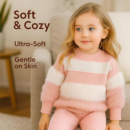 Generic - طقم شتوي منسوج للبنات مكون من قطعتين - سويتر وبنطلون واسع بلون سادة للخريف، مثالي للمناسبات الكاجوال والرسمية