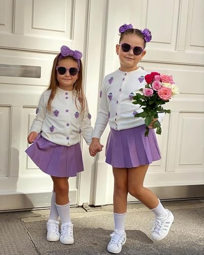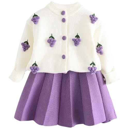 Generic - ملابس شتوية للبنات - طقم أنيق مكون من بلوزة محبوكة ناعمة بأكمام طويلة مع تنورة ميني قصيرة بكسرات للبنات الصغيرات لخزانة ملابس فصل الشتاء