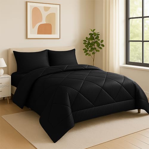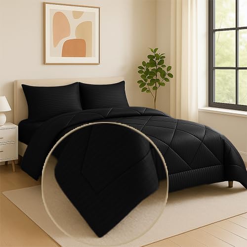 Snooze - Winter hotel quilt jackared striped, 220 * 235cm, Black