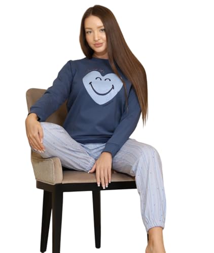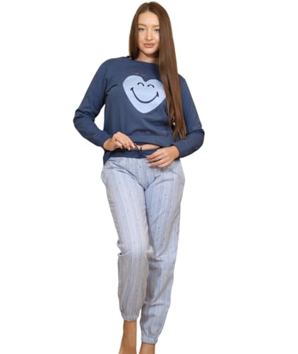 Generic - بيجامة شتوي ميلتون مبطن تيشيرت بتصميم شعار و بنطلون بنقشة زهور للنساء