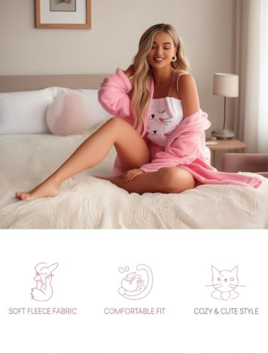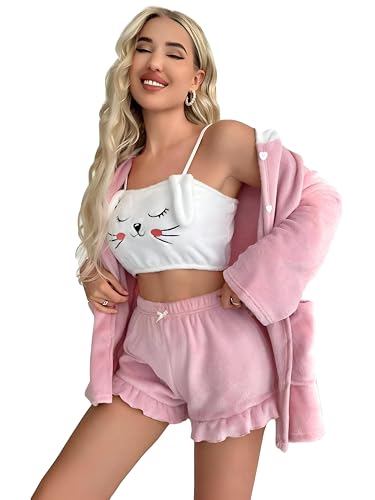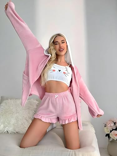 Generic - ملابس شتوية - طقم لانجيري مخملي ناعم مصمم للنساء مع ثلاث قطع متناسقة بما في ذلك شورت وبلوزة ورداء، مقاس واحد مثالي لوزن 55-85 كجم