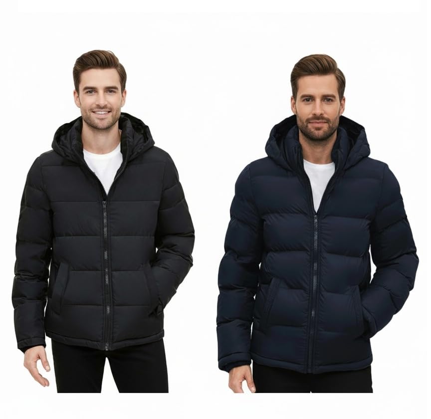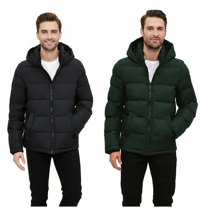 Generic - مجموعة جاكيت منتفخ للشتاء، معطف بغطاء للرأس مع سحاب للاغلاق، تصميم معزول مبطن للطقس البارد