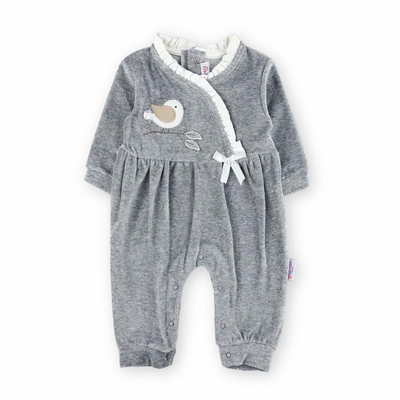 Generic - Winter Velvet Bird Jumpsuit - Soft Fleece, 3-6 Months, Gray | Cozy Baby Outfit