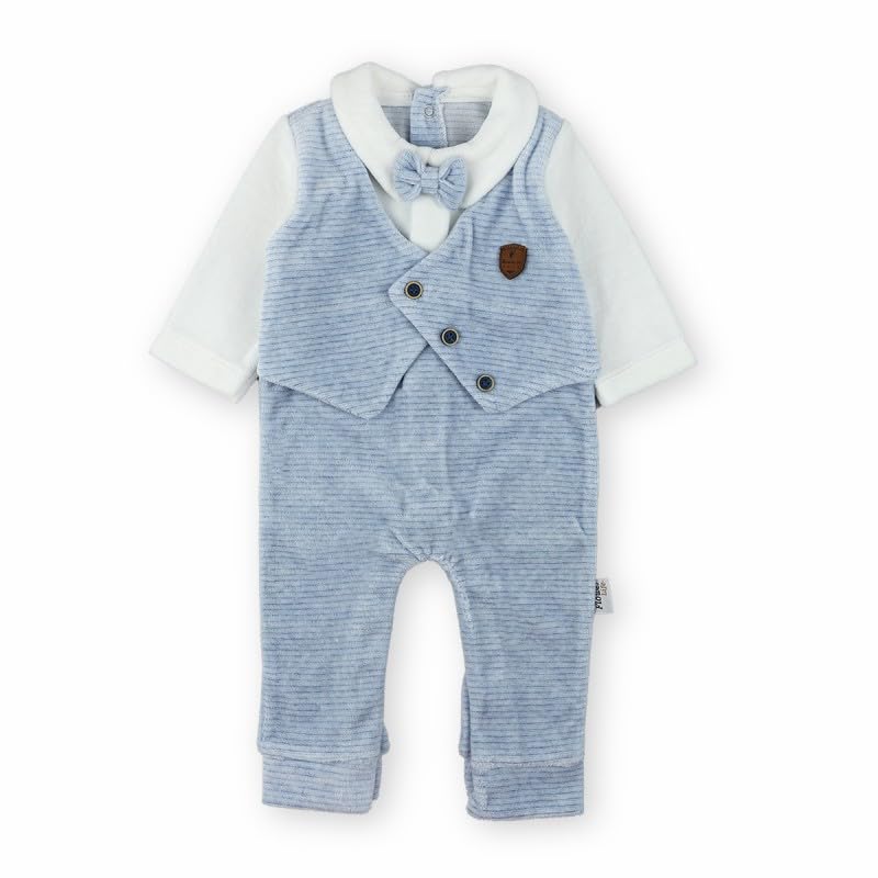 Generic - سالوبيت شتوي من القطيفة مع ربطة فيونكة، لون أزرق فاتح، مقاس 6-9 أشهر