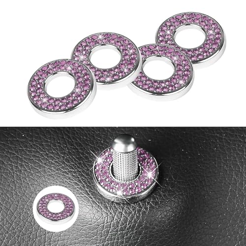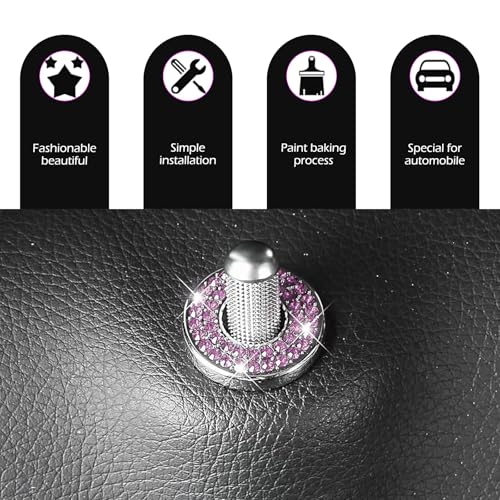 winterrock - 4PCS Bling Car Inner Door Lock Covers, Rhinestones Crystal Pull Rod Bolt Decoration Stickers, Sparkly Auto Door Bolt Lock Pin Caps, Compatible with Mercedes-Benz A/B/C/D/E Class (Pink)