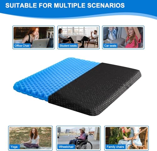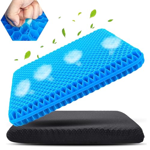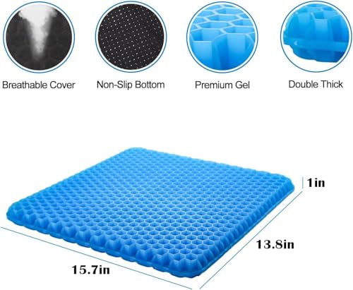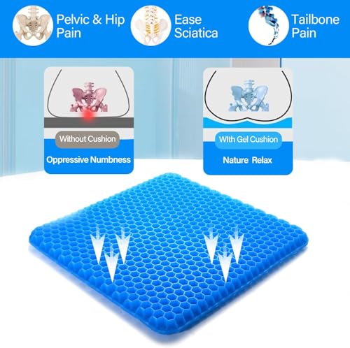 - ✅【𝐇𝐨𝐧𝐞𝐲𝐜𝐨𝐦𝐛 𝐆𝐞𝐥 𝐂𝐮𝐬𝐡𝐢𝐨𝐧】Our gel seat cushion has a double layer honeycomb construction designed to provide superior support and comfort. The innovative design ensures, even weight distribution and reduced pressure points. Say goodbye to pain and discomfort caused by prolonged sitting!