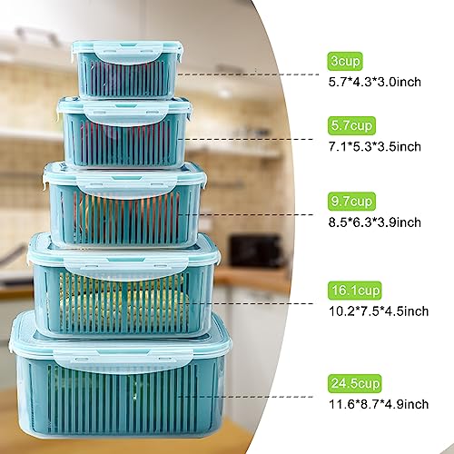 • 5 حاويات تخزين للثلاجة: 5 أحجام من 24.5 كوب + 16.1 كوب + 9.7 كوب + 5.7 كوب + 3 أكواب، يمكن استخدامها لتصنيف وتنظيم العديد من أنواع الفواكه أو الخضروات، مثل الخس والطماطم والفراولة والعنب.