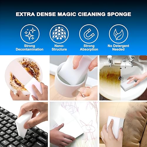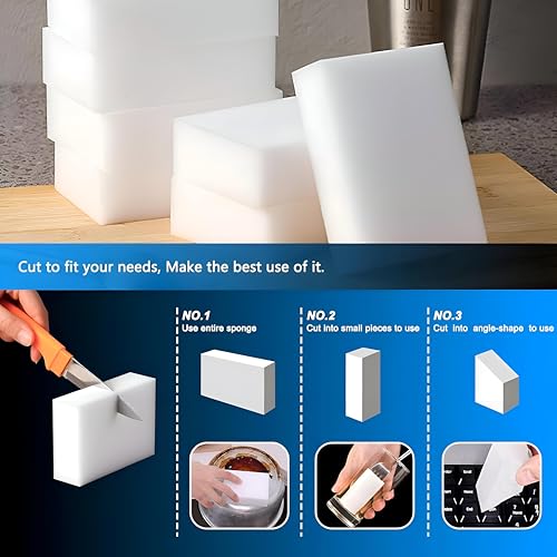 - إسفنجة ميلامين فائقة السماكة مصممة بهيكل عالي الكثافة، مما يوفر متانة تدوم طويلاً وتتحمل جلسات تنظيف متعددة.