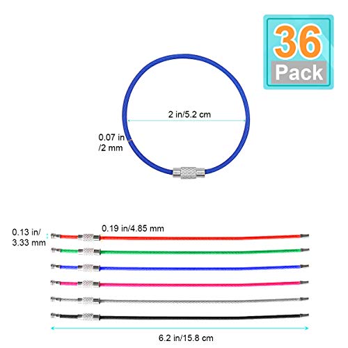 ForTomorrow - Wire Keychain Cable Stainless Steel, ForTomorrow 36pcs 6 Inch Coated Key Chain Ring with Screw Lock, Large Keyring Loop for Tag Luggage