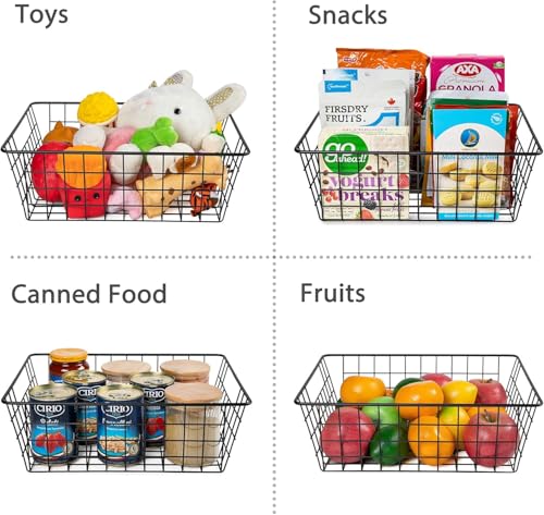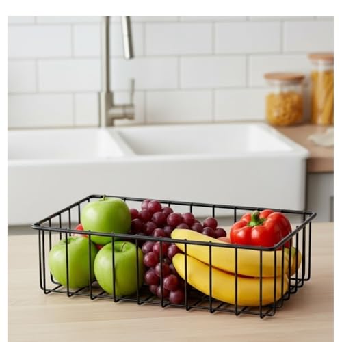 - Made for Long-Term Daily Use ---- Made of solid metal with black stoving varnish surface, our wire storage baskets are lightweight and sturdy for long-term daily use. Nice looking design makes it's easy to see what you have at a glance, makes finding things easier and remembering what's there, so you will not overbuy or have anything go to waste.