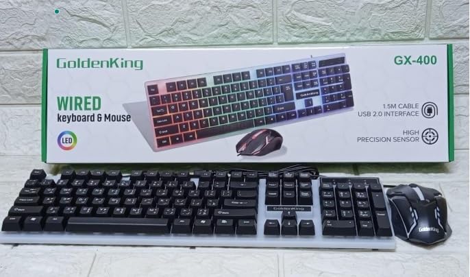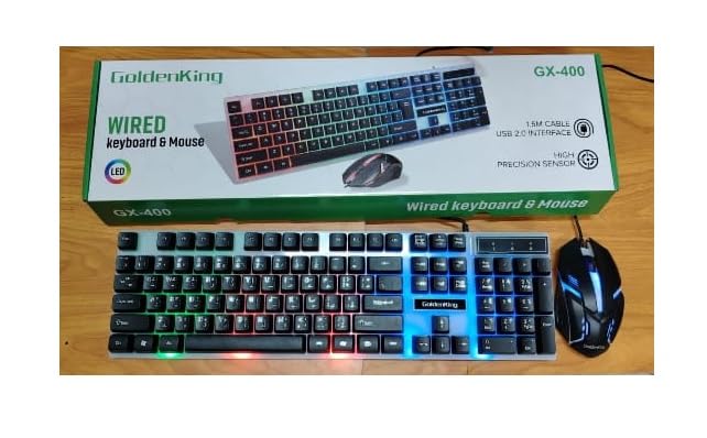 Generic - مجموعة ماوس ولوحة مفاتيح للألعاب USB بسلك وأزرار مرنة مرتفعة (GX-400)
