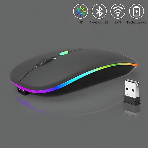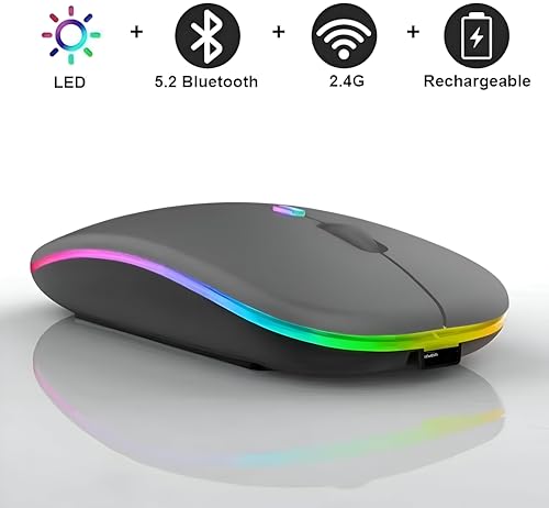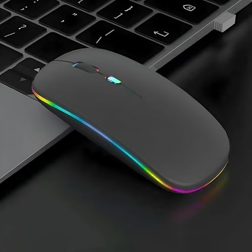 Generic - ماوس بلوتوث لاسلكي - نقرات صامتة، اضاءة RGB، تصميم نحيف وخفيف، قابل لاعادة الشحن بمنفذ USB لاجهزة اللابتوب والكمبيوتر وماك والالعاب والمكتب، اسود مع ضوء دافئ
