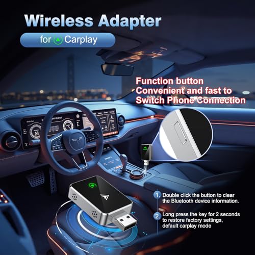 - 1 .Wide Compatibility: This wireless CarPlay adapter is compatible with a broad range of car models, making it the perfect solution for iPhone users to easily switch to wireless Apple CarPlay. It also supports Android Auto wireless adapter functionality, ensuring it works for both iPhone and Android users.