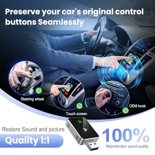 - 4 .Complete CarPlay and Android Auto Features: With the wireless Apple CarPlay adapter, you can access all CarPlay features wirelessly, including navigation, music, and voice control. It also supports Android Auto wireless adapter for Android users, offering a universal solution for multiple devices.
