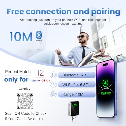 - 3 .Stable and Smooth Connection: Featuring the latest wireless technology, this Apple CarPlay wireless adapter provides a reliable, lag-free connection for all your CarPlay needs, whether you're streaming music, using navigation, or making hands-free calls.