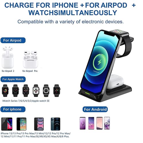 - ✅ -【Multiple Certified Safe Wireless Charging Station】This 3 in 1 Wireless charging station for multiple devices, sturdy yet lightweight,this watch charger phone charging station is built with Over-current,over-voltage,over-temperature,short circuit protection, foreign substance examination,valid identification of metallism disturbance protection,this wireless charger offer you safe charging protection.