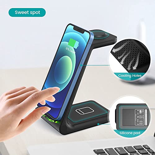 Excefore - Wireless Charger, 3 in 1 Wireless Charger Station, 15W Fast Charging Dock Stand for Apple iPhone 14/13/13 Pro/13 Pro Max/12 mini/12/12 Pro/SE/X/XR/iWatch 6/5/4/3/2/Airpods 2/Pro for Samsung S20 FE/S21