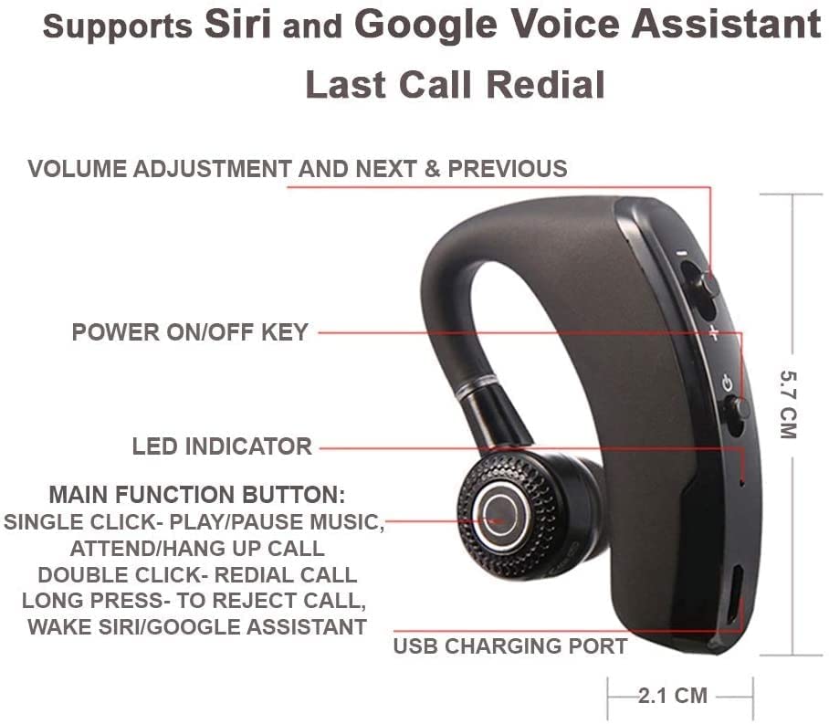 Other - سماعة اذن لاسلكية بلوتوث 4.0 مع ميكروفون سماعة اذن بدون استخدام اليدين للهواتف المحمولة V9، سماعة رأس، داخل الأذن، أسود