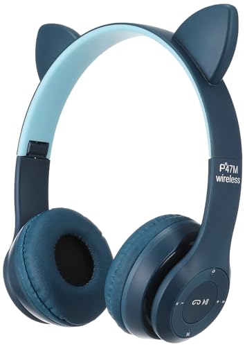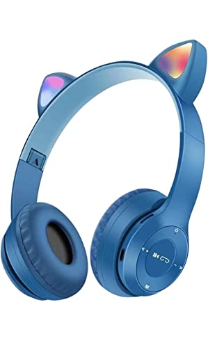 Generic - سماعة رأس لاسلكية للالعاب P47 M CAT على شكل اذن قطة باضاءة ليد بلوتوث ستيريو مضيئة للاطفال والبالغين ازرق فوق الاذن
