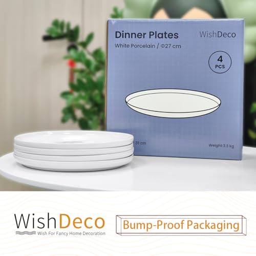 WishDeco - White Dinner Plates Set of 4, Ceramic Dining Plates 10.5 inch, Large Salad Plate, Porcelain Kitchen Plate for Pizza, Steak, Microwave and Dishwasher Safe