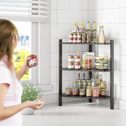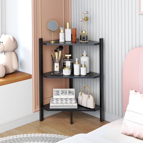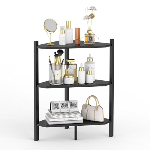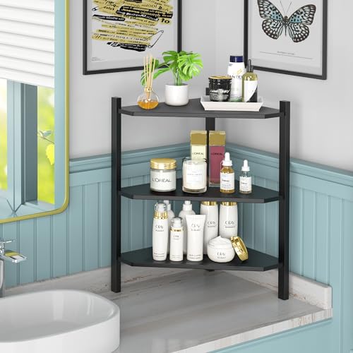 Wisuce - Wisuce Black 3 Tier Corner Shelf, Bamboo Shower Corner Shelves Free Standing Shelf Storage Organizer for Bathroom Living Room Kitchen