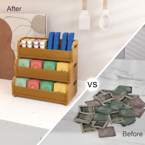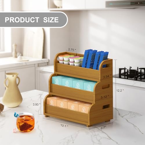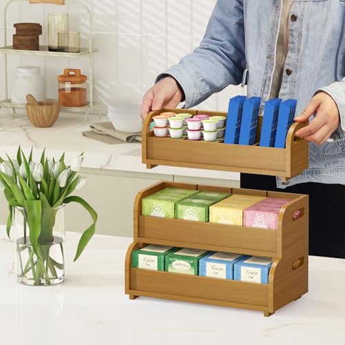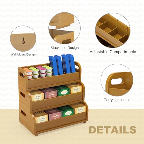 Wisuce - Wisuce Tea Holder for Tea Bags Organizer - Bamboo Tea Organizer for Tea Bags 3-Tier Stackable Wall Mount Large Capacity Tea Storage Box (Walnut)