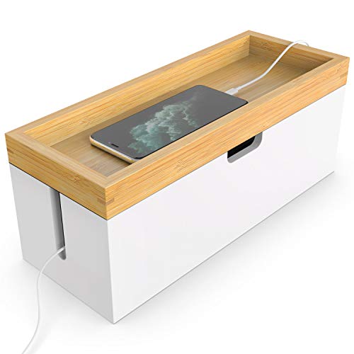 - 【Free Phone Holder】The bamboo cable management box lid of our box is also available as a tray to store smartphones or other small devices while keeping the wires nicely popping out.