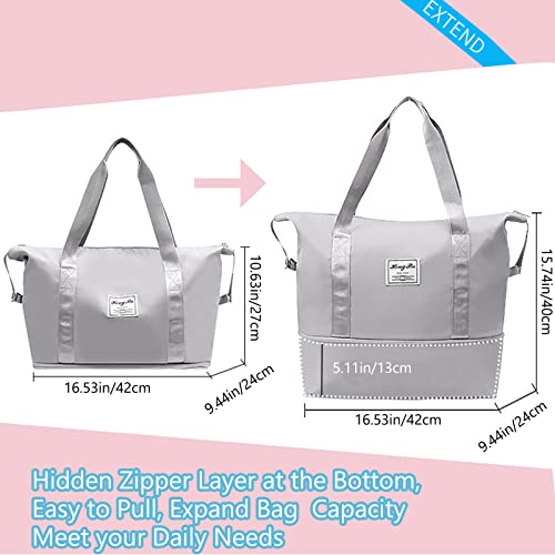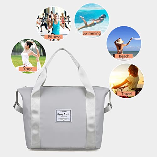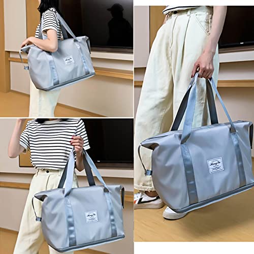Witwatia - Witwatia Large Capacity Foldable Travel Bag, Portable Storage Bag Tote Bag for Women, Expandable Waterproof Oxford Fabric Duffel Bag for Shopping, Sports, Gym, Travel, Vacation (Grey)
