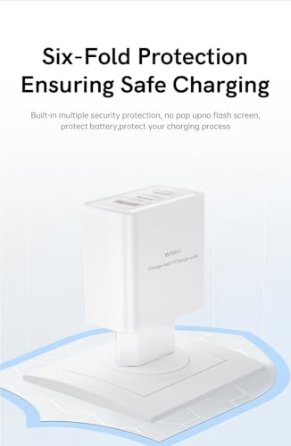 WiWU - شاحن من ويوو بمنفذي USB-C و USB-A متوافق مع آيفون و سامسونج و هواوي بقدرة 65 واط مع تقنية GaN للشحن السريع