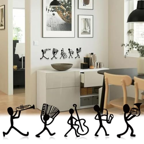 WKRTDY - Music Themed Wall Sticker for Living Room with Black Stripes for Modern Minimal Atmosphere - Also Ideal for Bedroom - 5 Pieces Authentic Design Wall Art
