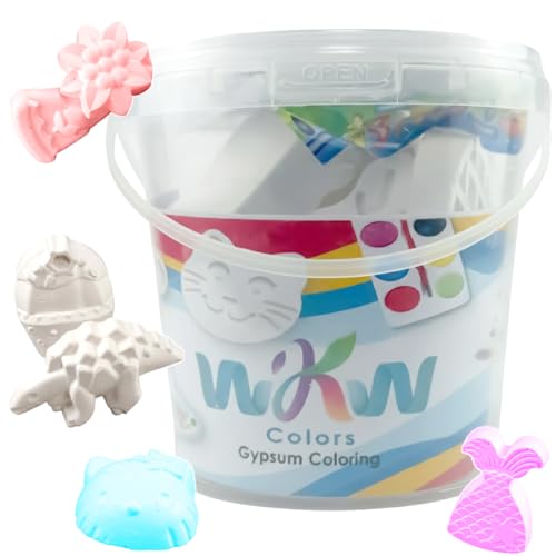 WKW - مجموعة مجسمات جبس صغيرة من دبليو كيه دبليو، مجموعة من حوالي 8 درجات مختلفة واحجام مختلفة ولوحة الوان مائية من 6 الوان، للتلوين والرسم، تعليمية ذاتية الصنع