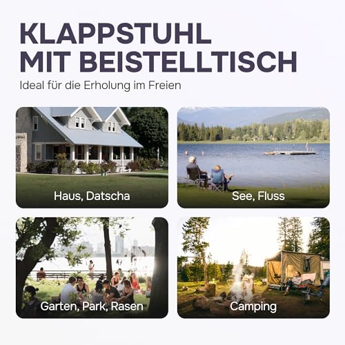 - Comfort features: Wide seat, quick-drying backrest and built-in table with cup holder.