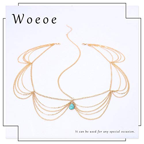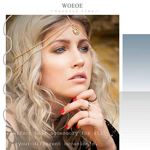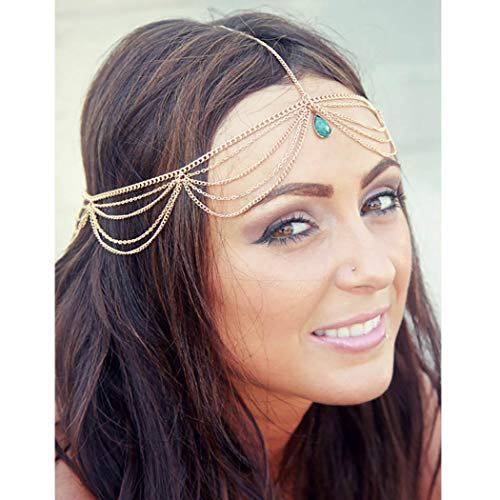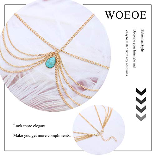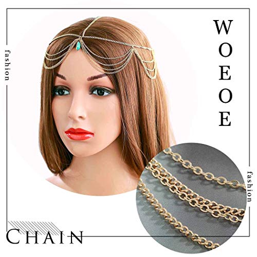 Woeoe - Woeoe Vintage Gold Head Chain Turquoise Forehead Headbands Sequins Festival Headpiece Jewelry for Women and Girls (gold5)