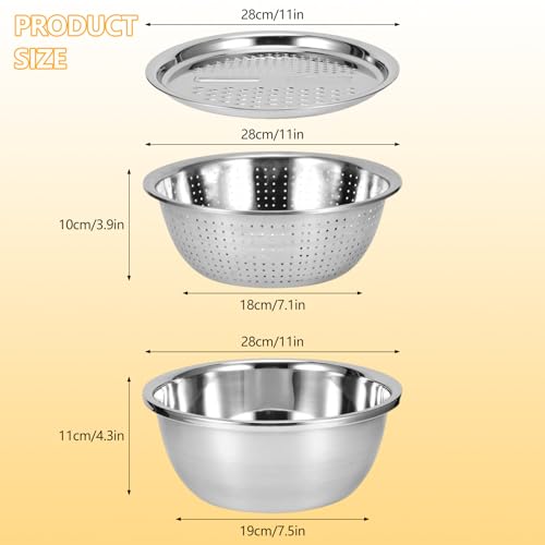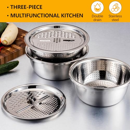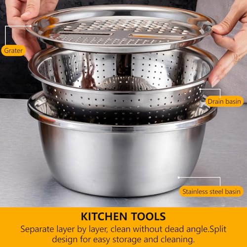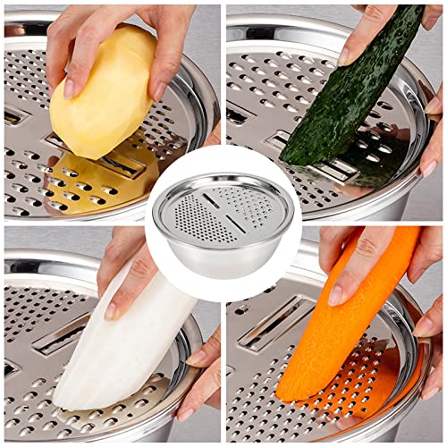 WOHPNLE - Multifunctional Stainless Steel Basin Grater, 3 In 1 Kitchen Multipurpose Vegetable Slicer Graters Vegetable Cutter With Strainer Bowl