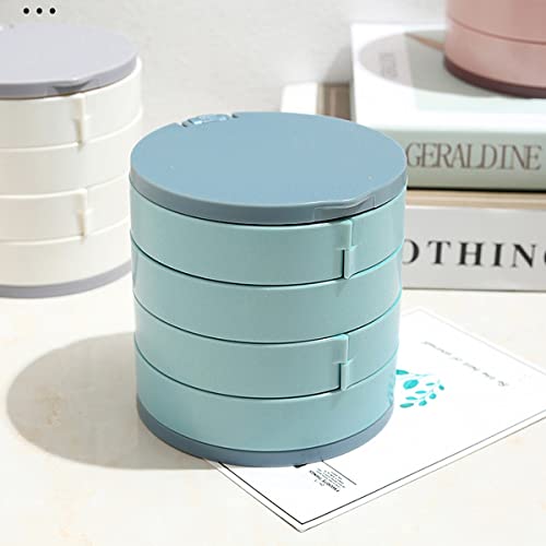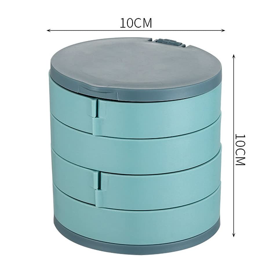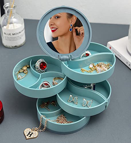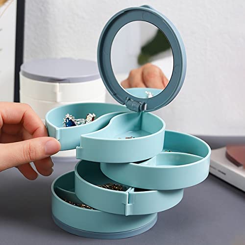 wolpin - wolpin Jewellery Organiser Box Rotating with Mirror Portable Storage Box Case Multi Layers for Rings, Earrings, Necklace Home Organizer, Blue