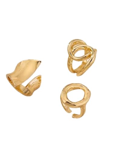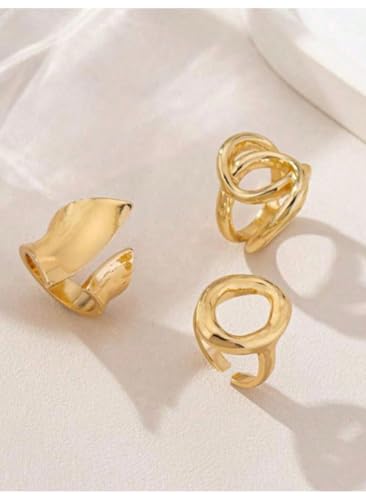 Generic - Women 3Pcs/Set Unique Punk Style Exaggerated Glossy Round Open Rings, Geometric Curved Surface Rings, And Geometric Glossy Cross Rings One Size Black
