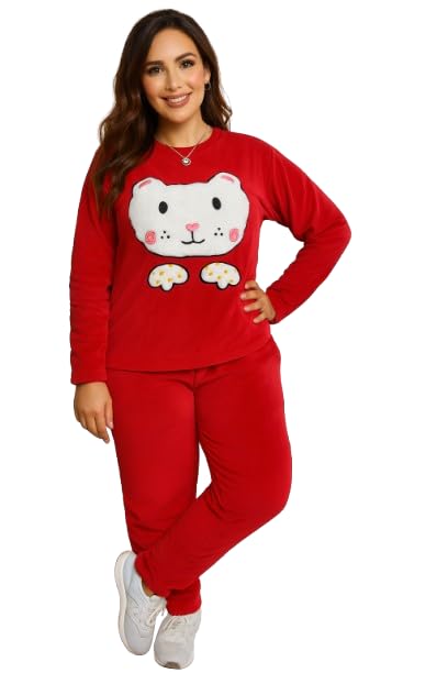 Generic - Women and Girls Pajama Set Velvet - embroidery - Crew Neck - Long sleeves