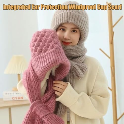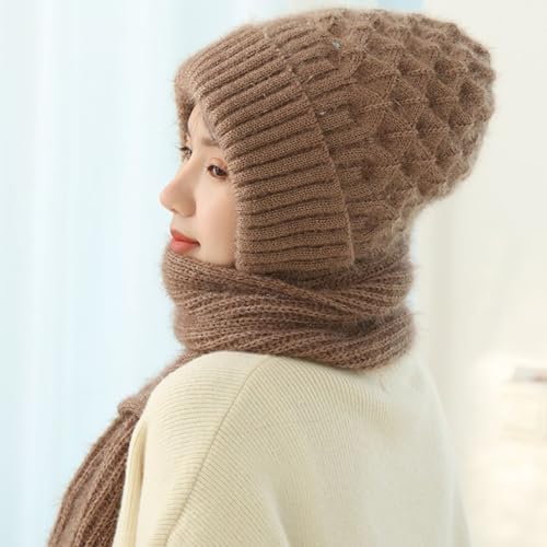 Qiuumey - قبعة بالاكلافا بغطاء رأس، سكارف محبوك من الصوف المرن في فصل الشتاء لحماية الأذن، قبعة صغيرة مقاومة للرياح للنساء