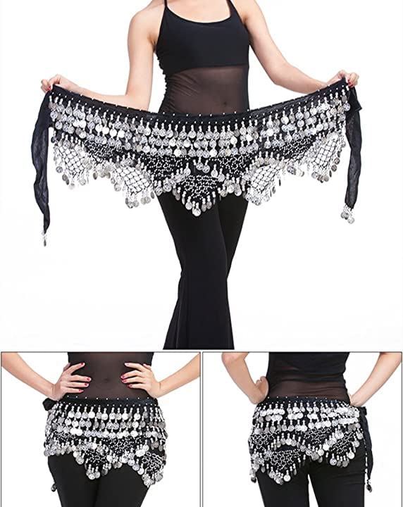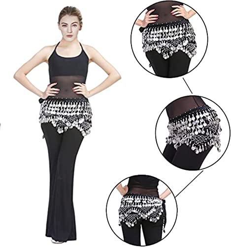 TAME - Women Belly Dance Hip Scarf with Coins Velvet Belly Dance Belt, Belly Dancer Costumes for Women Grils