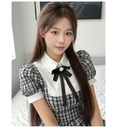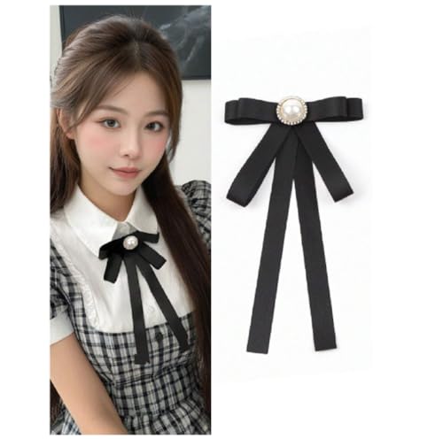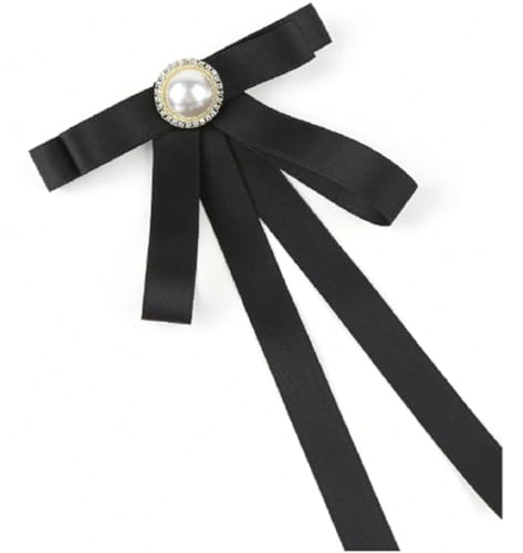 Generic - Women Black Bow Brooch with Faux Pearl Rhinestone Silver Plated Blouse Pin Brooch for Daily Wear, Date, Party etc