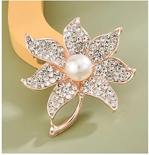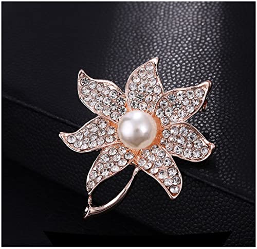 Generic - بروش دبوس نسائي أنيق من اللؤلؤ طبيعي دبوس زينة مطلي ذهب تصميم زهور