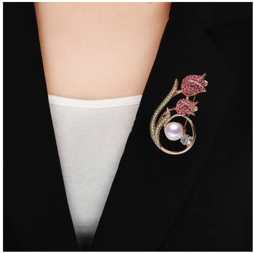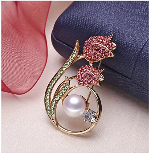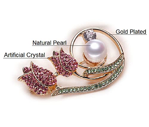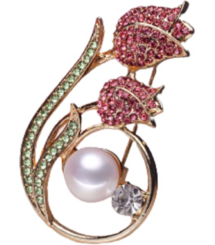 Generic - Women Elegant Natural Pearl Brooch Pin Decoration Gold Plated Rose Design